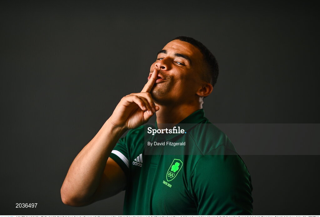 6 July 2021; Team Ireland has officially selected the Men’s Rugby Sevens Team who will compete at the Olympic Games in Tokyo. Following their exciting dominance in the final Olympic Repechage in Monaco, the Irish team have made history in becoming the first Rugby team that will compete for Ireland at the Olympic Games. Pictured is Jordan Conroy during a Tokyo 2020 Official Team Ireland Announcement for Rugby 7s at Sport Ireland Campus in Dublin. Photo by David Fitzgerald/Sportsfile
