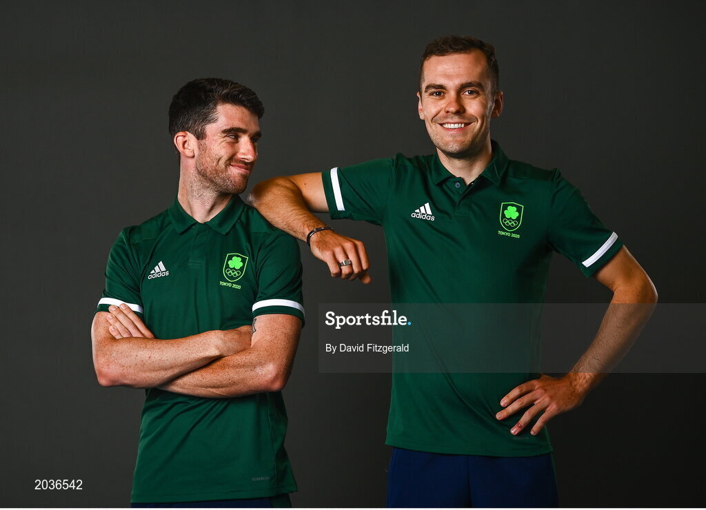 8 July 2021; Team Ireland track cyclists Felix English, left, and Mark Downey on the day they received their Olympic kit for Tokyo 2020. They will be competing in the Izu Velodrome from the 5 – 8 August. Photo by David Fitzgerald/Sportsfile