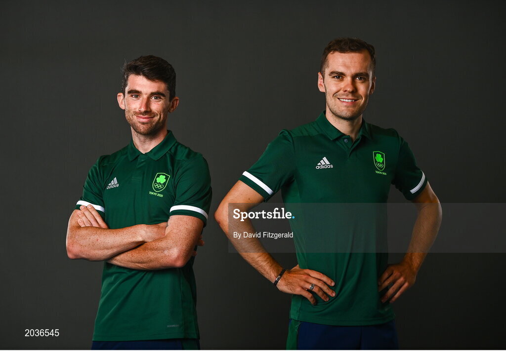 5 July 2021; Felix English, left, and Mark Downey during a Tokyo 2020 Official Team Ireland Announcement for Cycling at Sport Ireland Campus in Dublin. Photo by David Fitzgerald/Sportsfile