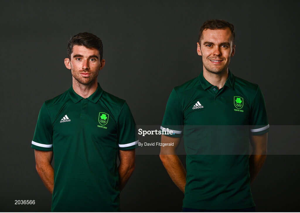 8 July 2021; Team Ireland track cyclists Felix English, left, and Mark Downey on the day they received their Olympic kit for Tokyo 2020. They will be competing in the Izu Velodrome from the 5 – 8 August. Photo by David Fitzgerald/Sportsfile