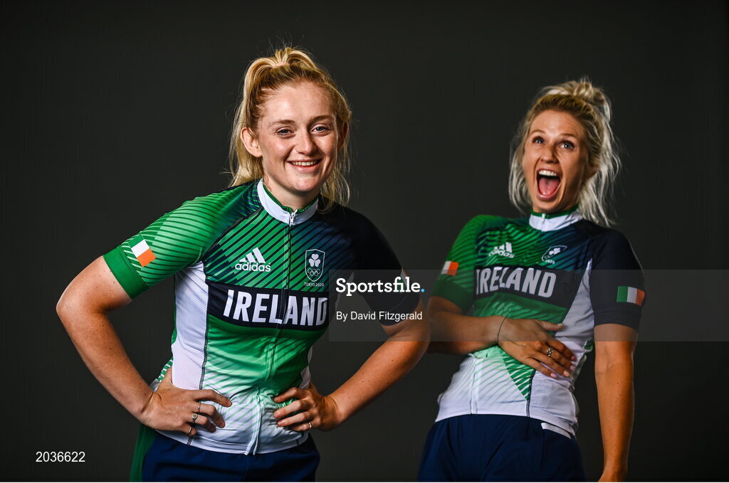 8 July 2021; Team Ireland track cyclists Emily Kay, left, and Shannon McCurley on the day they received their Olympic kit for Tokyo 2020. They will be competing in the Izu Velodrome from the 5 – 8 August. Photo by David Fitzgerald/Sportsfile