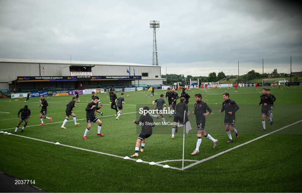 8 July 2021; Dundalk players warm up before the UEFA Europa Conference League first qualifying round first leg match between Dundalk and Newtown at Oriel Park in Dundalk, Louth. Photo by Stephen McCarthy/Sportsfile