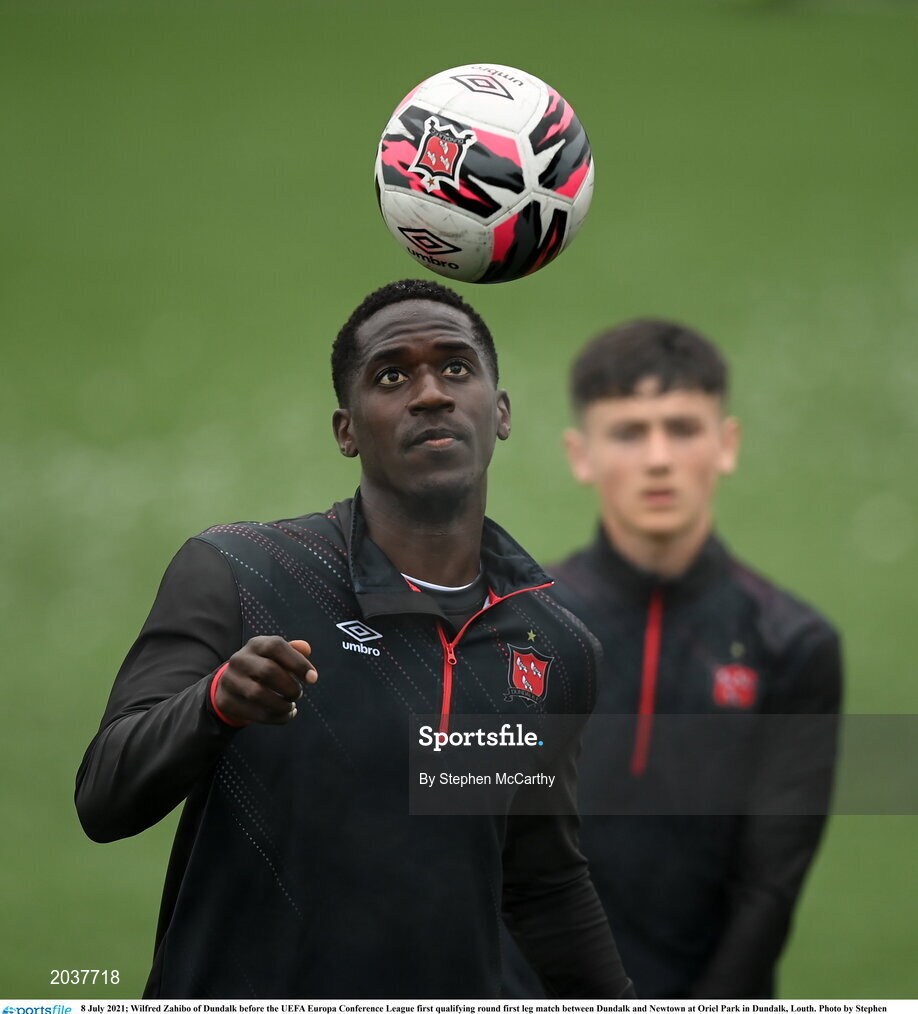 8 July 2021; Wilfred Zahibo of Dundalk before the UEFA Europa Conference League first qualifying round first leg match between Dundalk and Newtown at Oriel Park in Dundalk, Louth. Photo by Stephen McCarthy/Sportsfile
