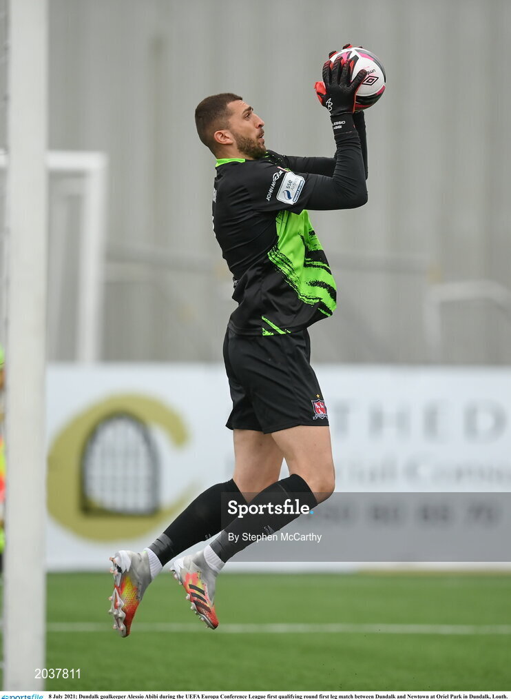 8 July 2021; Dundalk goalkeeper Alessio Abibi during the UEFA Europa Conference League first qualifying round first leg match between Dundalk and Newtown at Oriel Park in Dundalk, Louth. Photo by Stephen McCarthy/Sportsfile