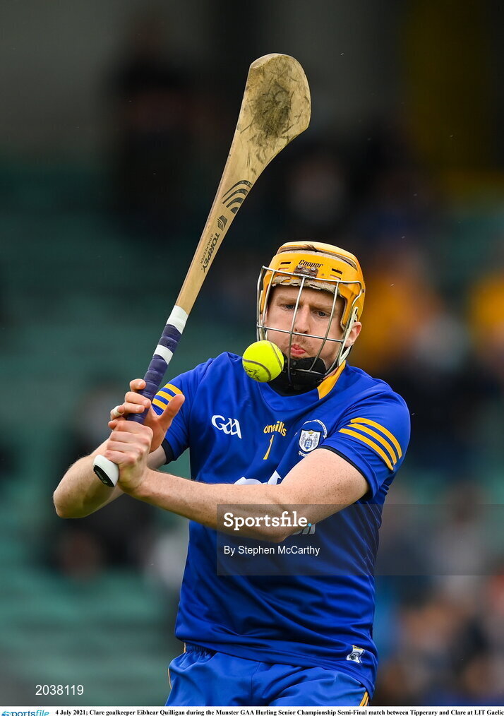 4 July 2021; Clare goalkeeper Eibhear Quilligan during the Munster GAA Hurling Senior Championship Semi-Final match between Tipperary and Clare at LIT Gaelic Grounds in Limerick. Photo by Stephen McCarthy/Sportsfile