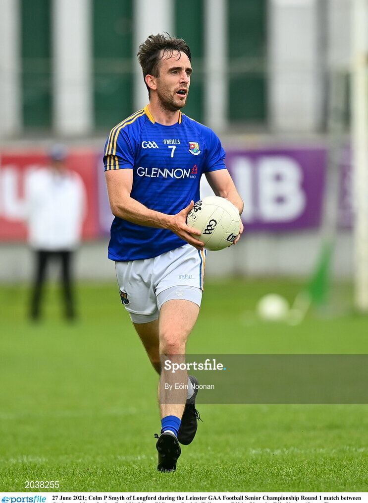 27 June 2021; Colm P Smyth of Longford during the Leinster GAA Football Senior Championship Round 1 match between Carlow and Longford at Bord Na Mona O’Connor Park in Tullamore, Offaly. Photo by Eóin Noonan/Sportsfile
