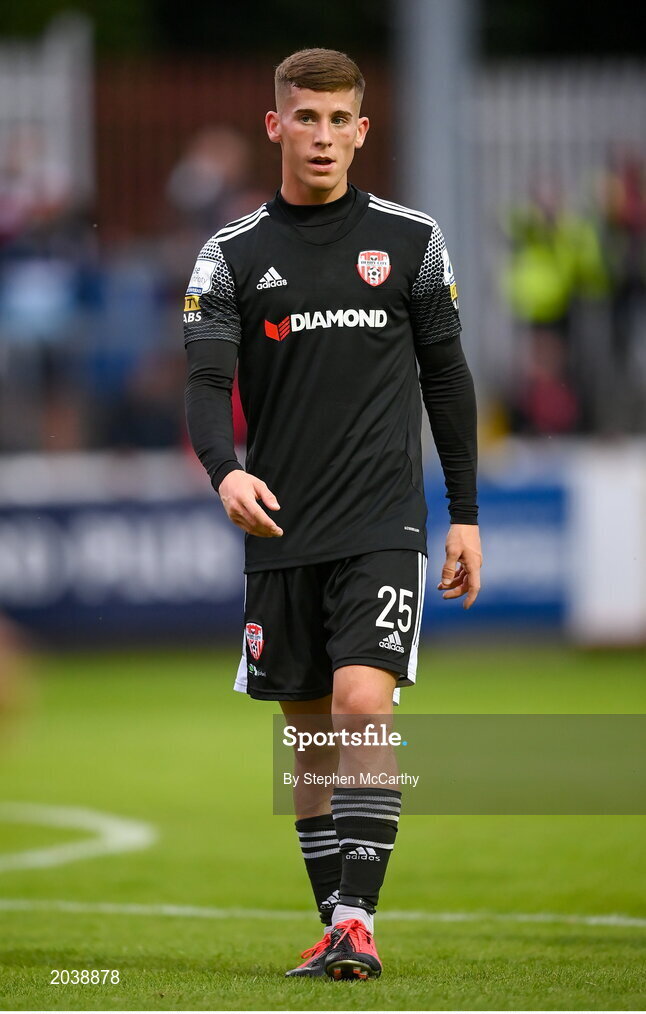 9 July 2021; Evan McLaughlin of Derry City during the SSE Airtricity League Premier Division match between St Patrick's Athletic and Derry City at Richmond Park in Dublin. Photo by Stephen McCarthy/Sportsfile
