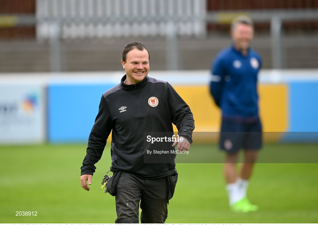 9 July 2021; St Patrick's Athletic's groundsman Dave Carter before the SSE Airtricity League Premier Division match between St Patrick's Athletic and Derry City at Richmond Park in Dublin. Photo by Stephen McCarthy/Sportsfile