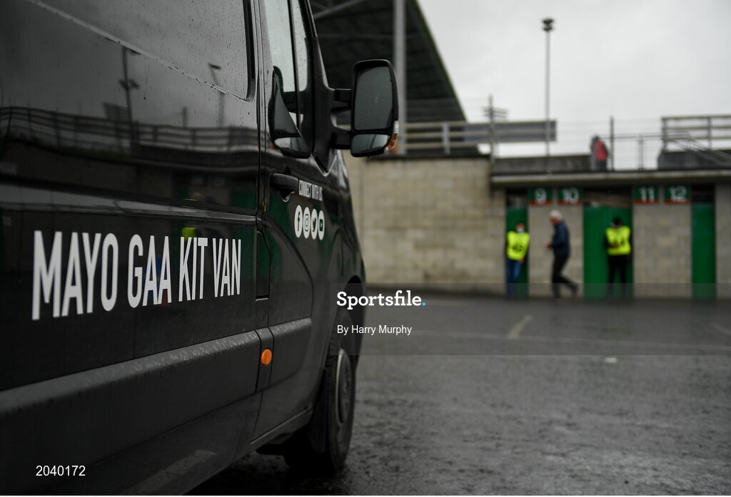 11 July 2021; The Mayo kit van is seen parked outside the ground before the Connacht GAA Senior Football Championship Semi-Final match between Leitrim and Mayo at Elverys MacHale Park in Castlebar, Mayo. Photo by Harry Murphy/Sportsfile