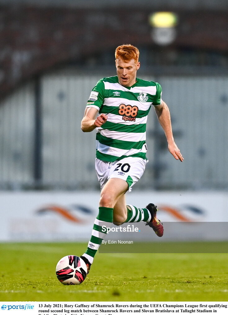 13 July 2021; Rory Gaffney of Shamrock Rovers during the UEFA Champions League first qualifying round second leg match between Shamrock Rovers and Slovan Bratislava at Tallaght Stadium in Dublin. Photo by Eóin Noonan/Sportsfile