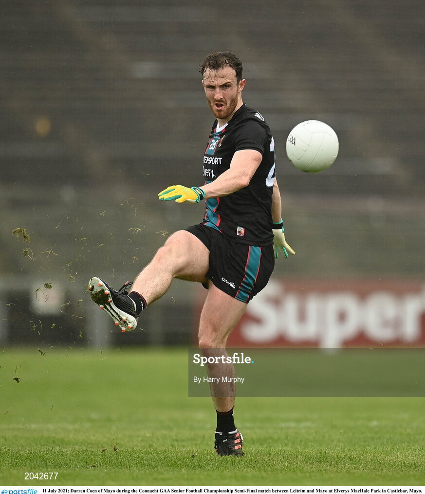 11 July 2021; Darren Coen of Mayo during the Connacht GAA Senior Football Championship Semi-Final match between Leitrim and Mayo at Elverys MacHale Park in Castlebar, Mayo. Photo by Harry Murphy/Sportsfile
