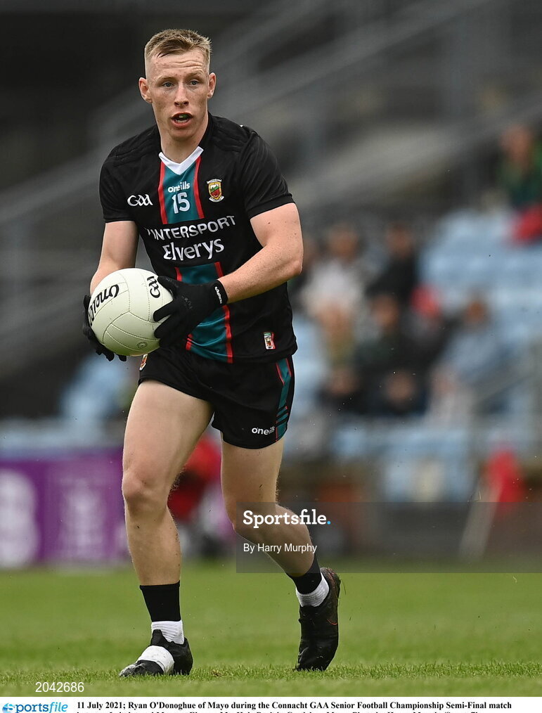 11 July 2021; Ryan O'Donoghue of Mayo during the Connacht GAA Senior Football Championship Semi-Final match between Leitrim and Mayo at Elverys MacHale Park in Castlebar, Mayo. Photo by Harry Murphy/Sportsfile