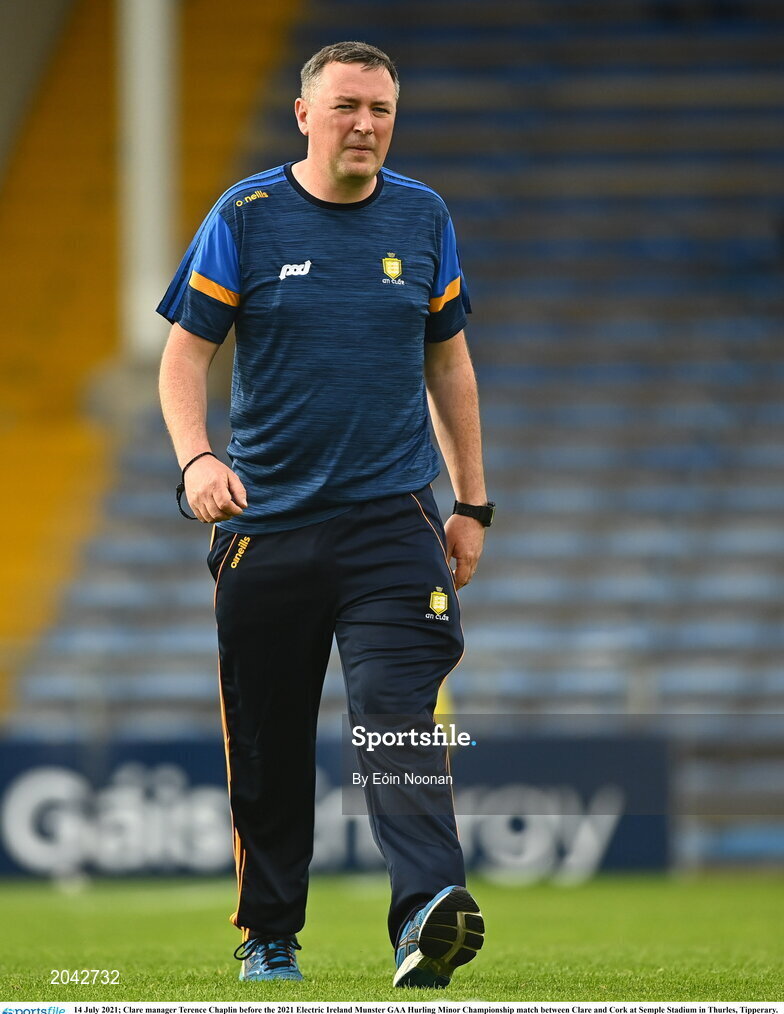 14 July 2021; Clare manager Terence Chaplin before the 2021 Electric Ireland Munster GAA Hurling Minor Championship Quarter-Final match between Clare and Cork at Semple Stadium in Thurles, Tipperary. Photo by Eóin Noonan/Sportsfile