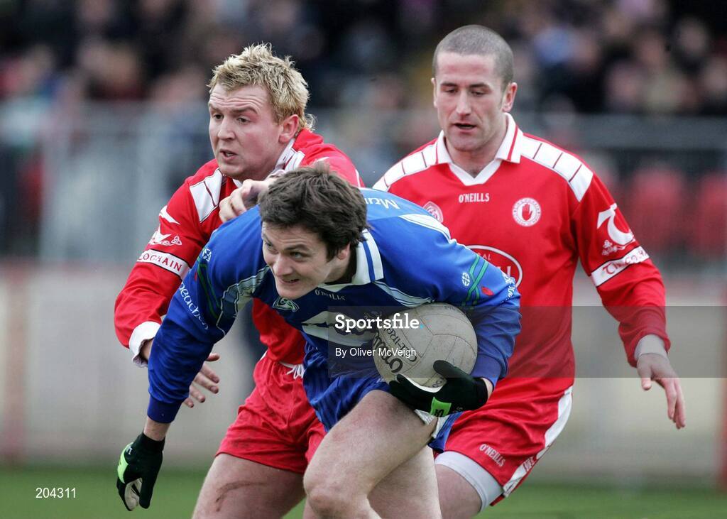 19 March 2006; Dermot Mc Ardle, Monaghan, is tackled by Owen Mulligan, Tyrone. Allianz National Football League, Division 1A, Round 5, Tyrone v Monaghan, Healy Park, Omagh, Co. Tyrone. Picture credit: Oliver McVeigh / SPORTSFILE