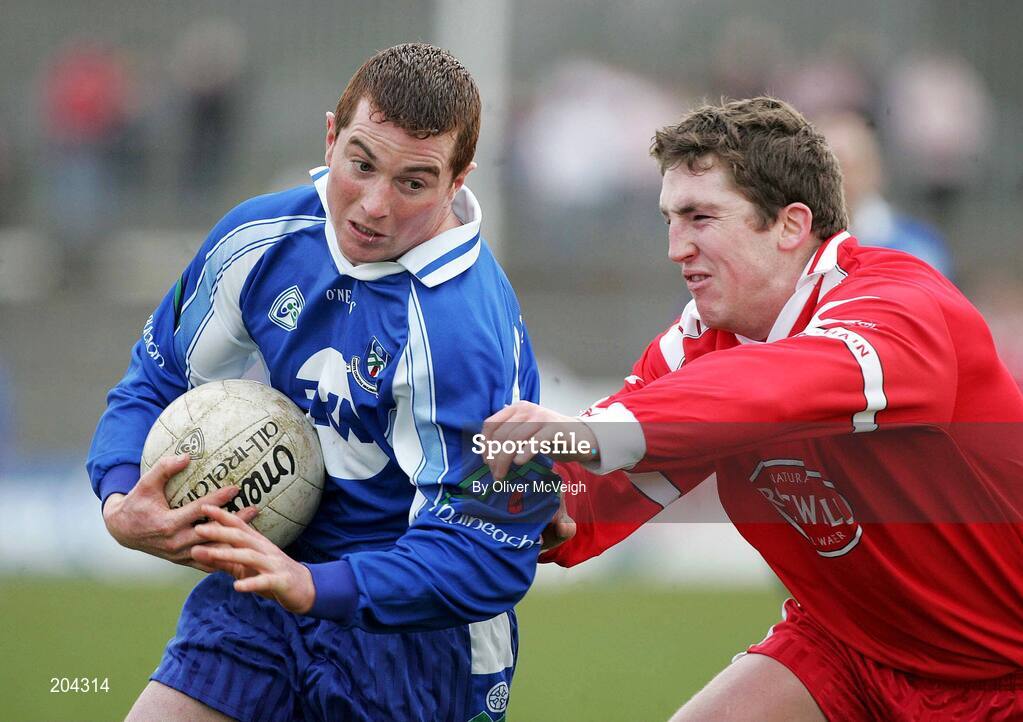 19 March 2006; Damien Freeman, Monaghan, is tackled by Dermot Carlin, Tyrone. Allianz National Football League, Division 1A, Round 5, Tyrone v Monaghan, Healy Park, Omagh, Co. Tyrone. Picture credit: Oliver McVeigh / SPORTSFILE