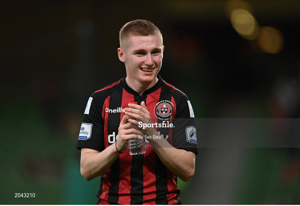 15 July 2021; Ross Tierney of Bohemians claps supporters after being substituted during the UEFA Europa Conference League first qualifying round second leg match between Bohemians and Stjarnan at the Aviva Stadium in Dublin. Photo by Seb Daly/Sportsfile