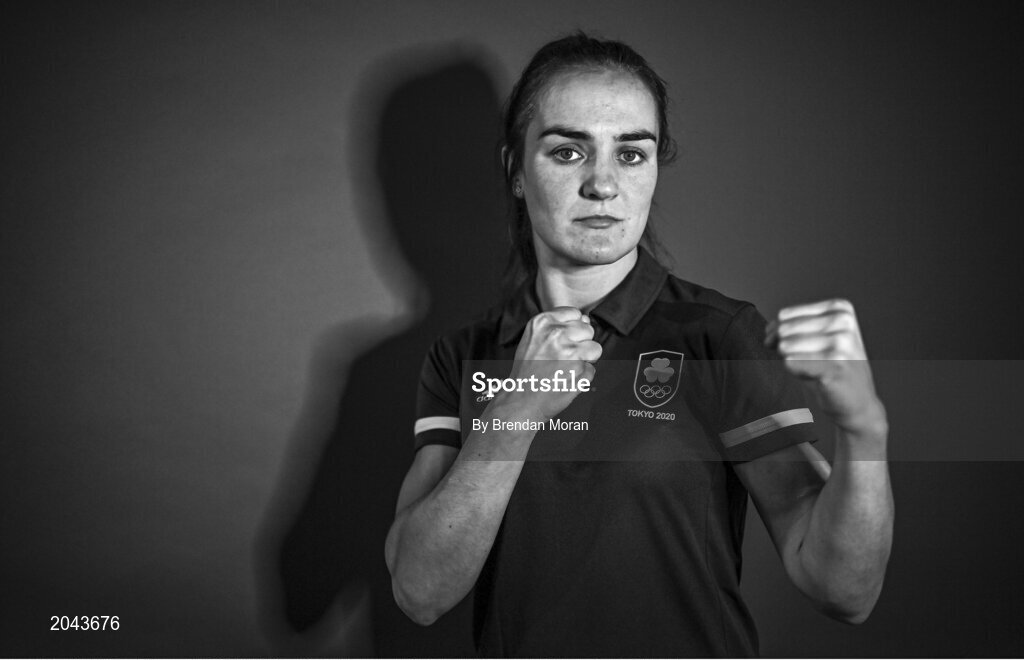 29 June 2021; (EDITOR'S NOTE; Image has been converted to black & white) Lightweight Kellie Harrington during a Tokyo 2020 Team Ireland Announcement for Boxing in the Sport Ireland Institute at the Sports Ireland Campus in Dublin. Photo by Brendan Moran/Sportsfile