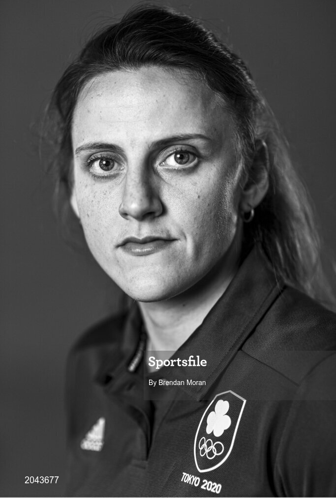 29 June 2021; (EDITOR'S NOTE; Image has been converted to black & white) Featherweight Michaela Walsh during a Tokyo 2020 Team Ireland Announcement for Boxing in the Sport Ireland Institute at the Sport Ireland Campus in Dublin. Photo by Brendan Moran/Sportsfile