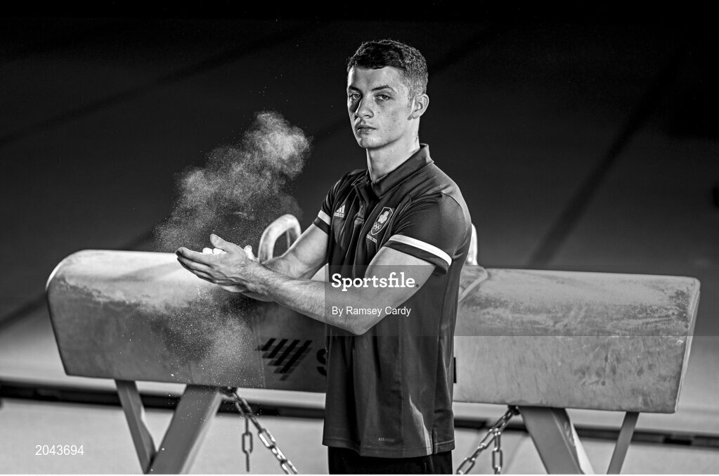 2 July 2021; (EDITOR'S NOTE; Image has been converted to black & white) Gymnast Rhys McClenaghan during a Tokyo Team Ireland Announcement for Gymnastics at the Sport Ireland Campus in Dublin. Photo by Ramsey Cardy/Sportsfile