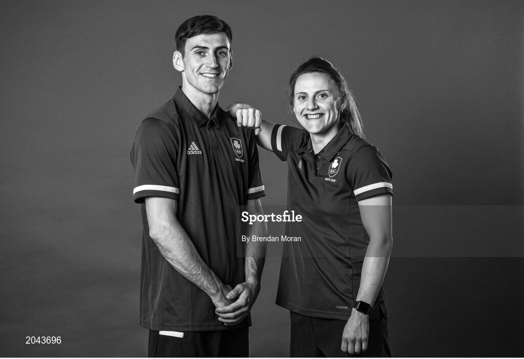 29 June 2021; (EDITOR'S NOTE; Image has been converted to black & white) Boxers and brother and sister Aidan and Michaela Walsh during a Tokyo 2020 Team Ireland Announcement for Boxing in the Sport Ireland Institute at the Sport Ireland Campus in Dublin. Photo by Brendan Moran/Sportsfile