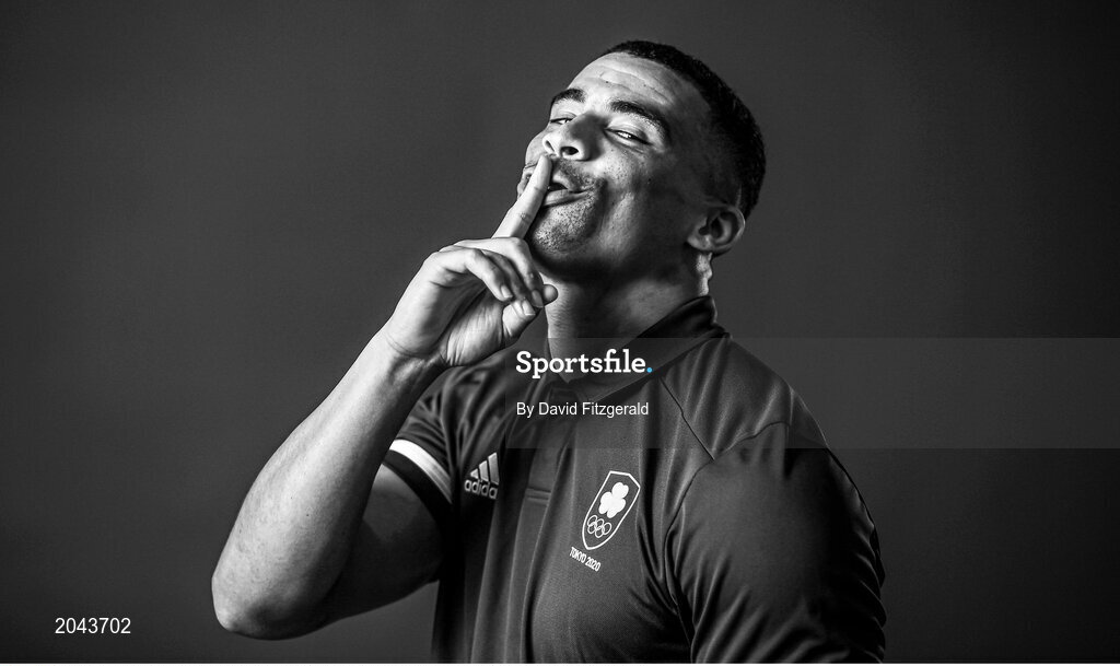 6 July 2021; (EDITOR'S NOTE; Image has been converted to black & white) Team Ireland rugby 7's squad member Jordan Conroy during a Tokyo 2020 Official Team Ireland Announcement for Rugby 7s at Sport Ireland Campus in Dublin. Photo by David Fitzgerald/Sportsfile