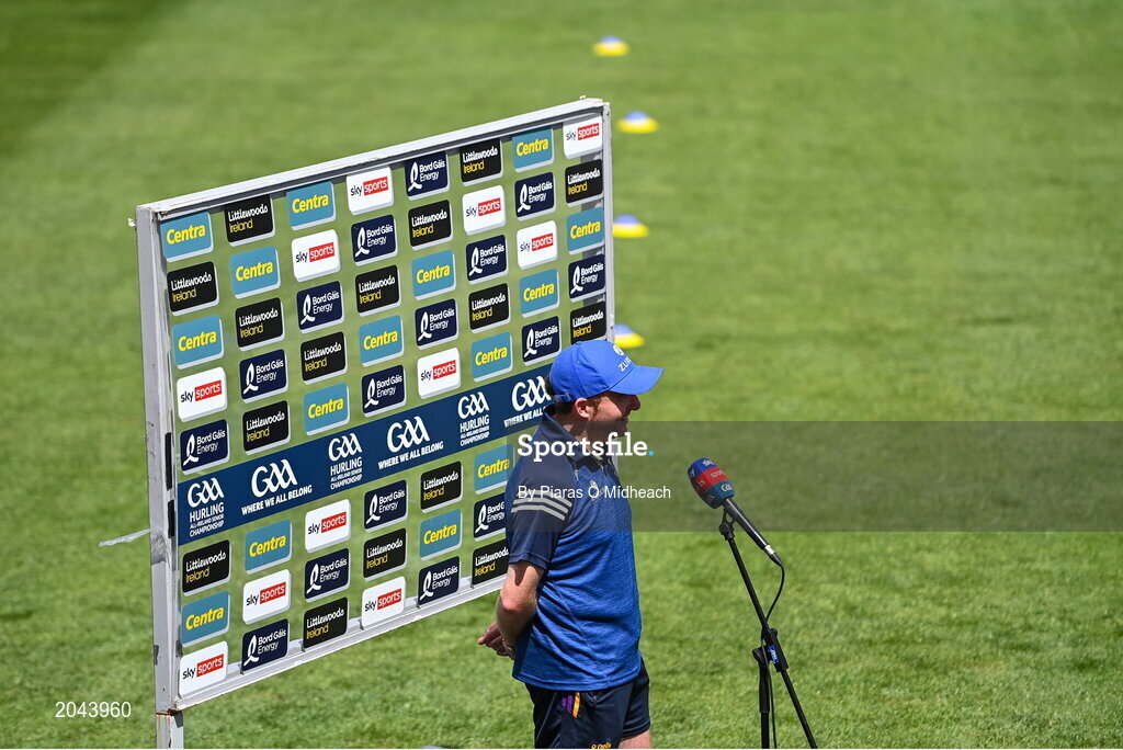 17 July 2021; Wexford selector Seoirse Bulfin is interviewed before the GAA Hurling All-Ireland Senior Championship Round 1 match between Clare and Wexford at Semple Stadium in Thurles, Tipperary. Photo by Piaras Ó Mídheach/Sportsfile
