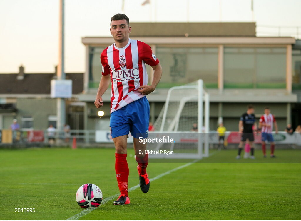 16 July 2021; Stephen Christopher of Treaty United prepares to take a corner kick during the SSE Airtricity League First Division match between Treaty United and UCD at Market's Field in Limerick. Photo by Michael P Ryan/Sportsfile