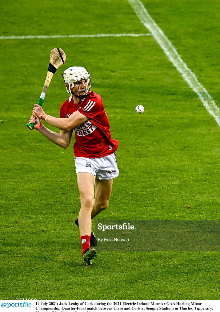 14 July 2021; Jack Leahy of Cork during the 2021 Electric Ireland Munster GAA Hurling Minor Championship Quarter-Final match between Clare and Cork at Semple Stadium in Thurles, Tipperary. Photo by Eóin Noonan/Sportsfile