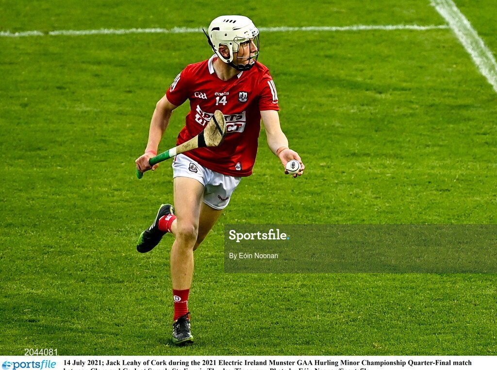 14 July 2021; Jack Leahy of Cork during the 2021 Electric Ireland Munster GAA Hurling Minor Championship Quarter-Final match between Clare and Cork at Semple Stadium in Thurles, Tipperary. Photo by Eóin Noonan/Sportsfile