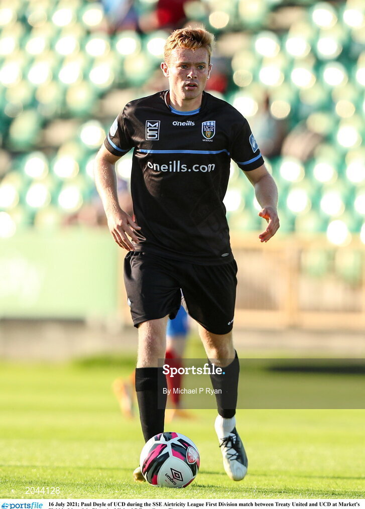 16 July 2021; Paul Doyle of UCD during the SSE Airtricity League First Division match between Treaty United and UCD at Market's Field in Limerick. Photo by Michael P Ryan/Sportsfile