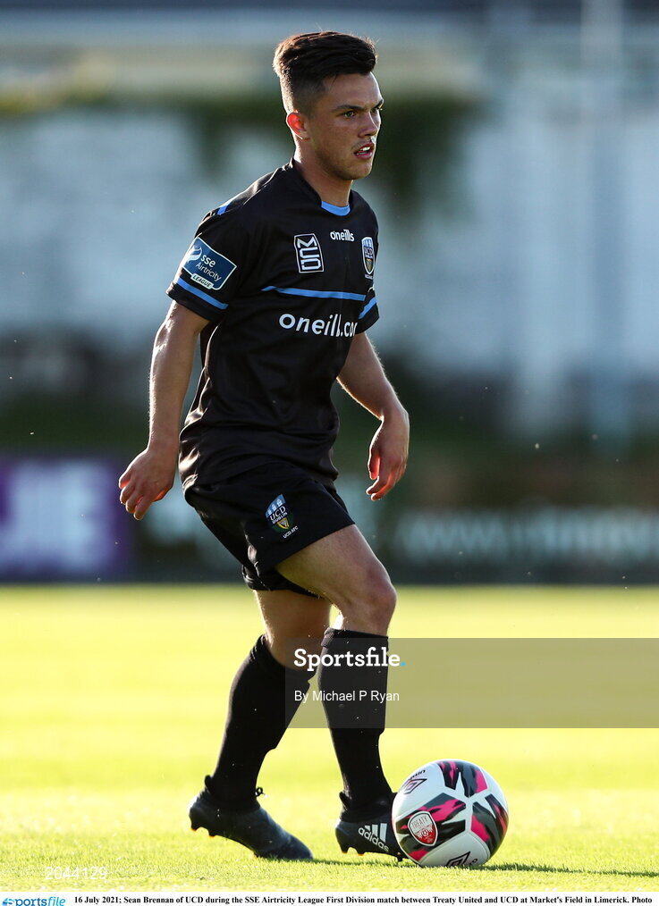 16 July 2021; Sean Brennan of UCD during the SSE Airtricity League First Division match between Treaty United and UCD at Market's Field in Limerick. Photo by Michael P Ryan/Sportsfile