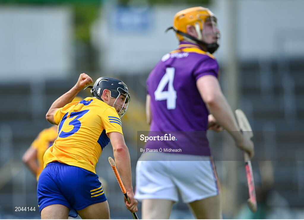 17 July 2021; David Reidy of Clare celebrates scoring a point during the GAA Hurling All-Ireland Senior Championship Round 1 match between Clare and Wexford at Semple Stadium in Thurles, Tipperary. Photo by Piaras Ó Mídheach/Sportsfile