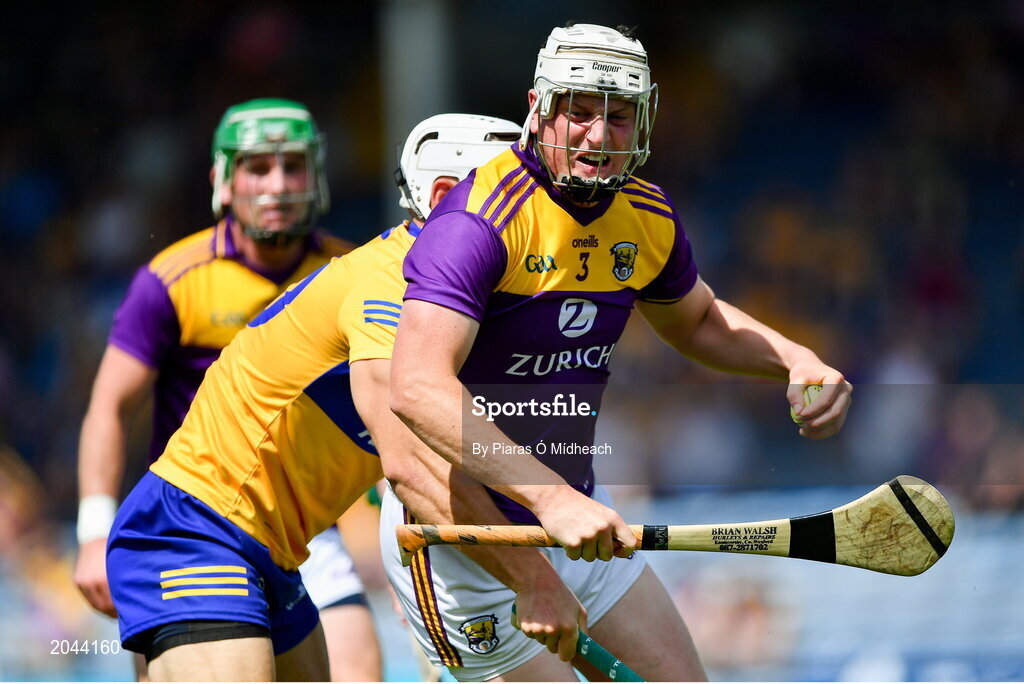 17 July 2021; Liam Ryan of Wexford in action against Aron Shanagher of Clare during the GAA Hurling All-Ireland Senior Championship Round 1 match between Clare and Wexford at Semple Stadium in Thurles, Tipperary. Photo by Piaras Ó Mídheach/Sportsfile