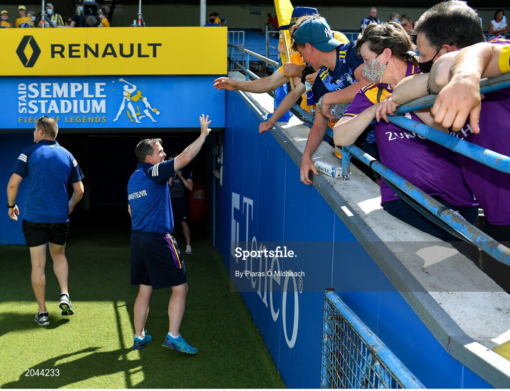 17 July 2021; Wexford manager Davy Fitzgerald waves to supporters after his side's defeat in the GAA Hurling All-Ireland Senior Championship Round 1 match between Clare and Wexford at Semple Stadium in Thurles, Tipperary. Photo by Piaras Ó Mídheach/Sportsfile