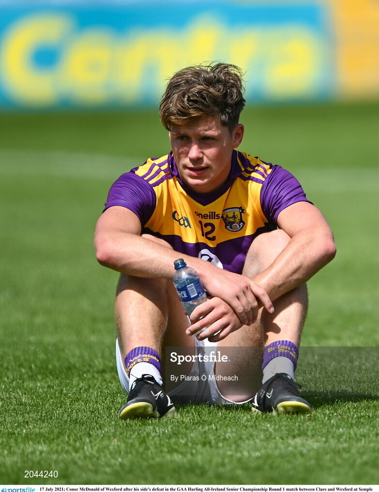 17 July 2021; Conor McDonald of Wexford after his side's defeat in the GAA Hurling All-Ireland Senior Championship Round 1 match between Clare and Wexford at Semple Stadium in Thurles, Tipperary. Photo by Piaras Ó Mídheach/Sportsfile