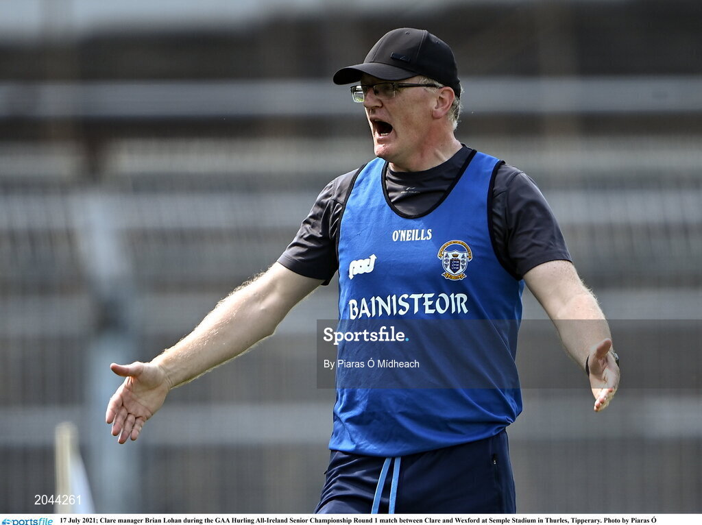 17 July 2021; Clare manager Brian Lohan during the GAA Hurling All-Ireland Senior Championship Round 1 match between Clare and Wexford at Semple Stadium in Thurles, Tipperary. Photo by Piaras Ó Mídheach/Sportsfile