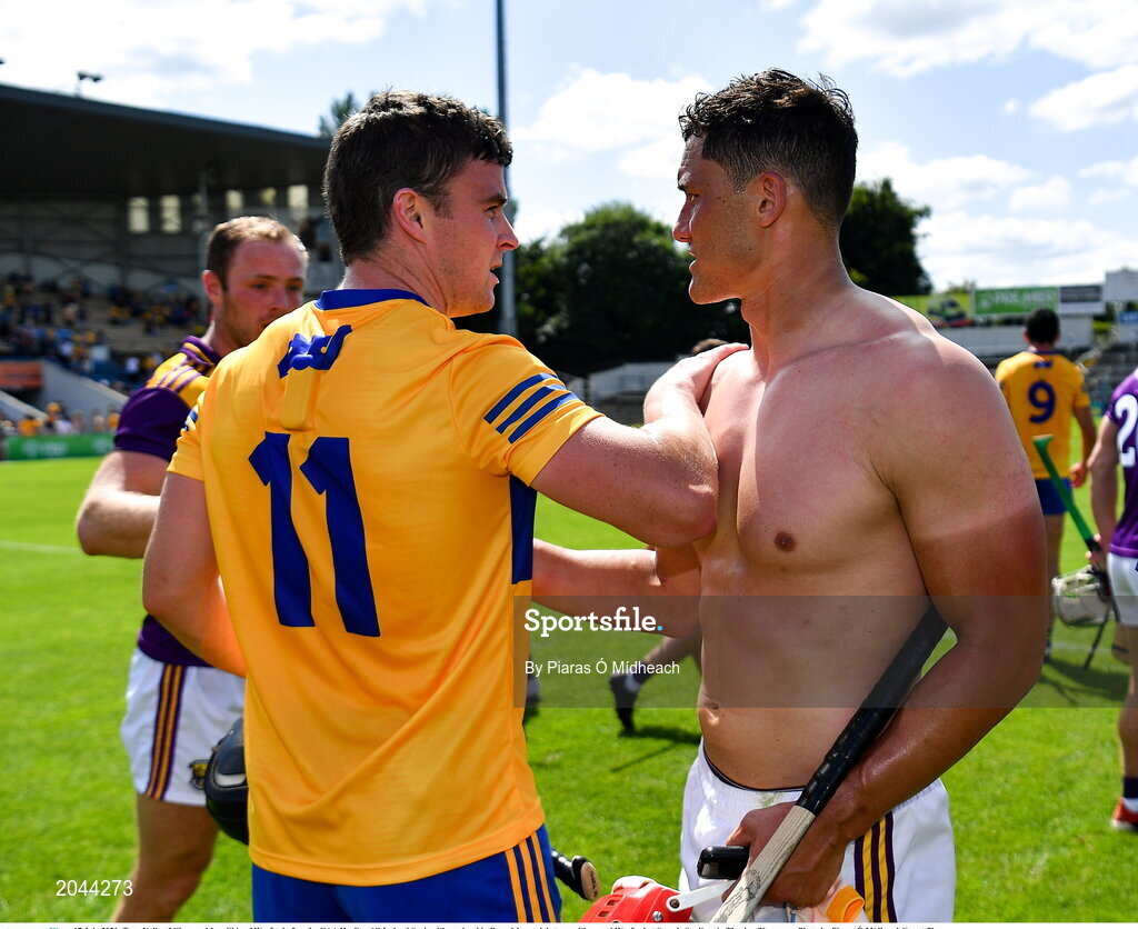 17 July 2021; Tony Kelly of Clare and Lee Chin of Wexford after the GAA Hurling All-Ireland Senior Championship Round 1 match between Clare and Wexford at Semple Stadium in Thurles, Tipperary. Photo by Piaras Ó Mídheach/Sportsfile