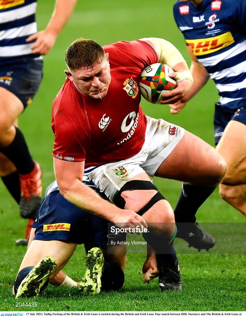 17 July 2021; Tadhg Furlong of the British & Irish Lions is tackled during the British and Irish Lions Tour match between DHL Stormers and The British & Irish Lions at Cape Town Stadium in Cape Town, South Africa. Photo by Ashley Vlotman/Sportsfile