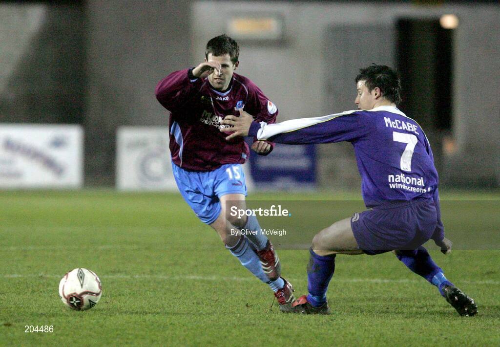 21 March 2006; Stephen Bradley, Drogheda United, in action against Dungannon's Shane Mc Cabe. Setanta Cup, Group 2, Dungannon Swifts v Drogheda United, Stangmore Park, Dungannon, Co. Tyrone. Picture credit: Oliver McVeigh / SPORTSFILE