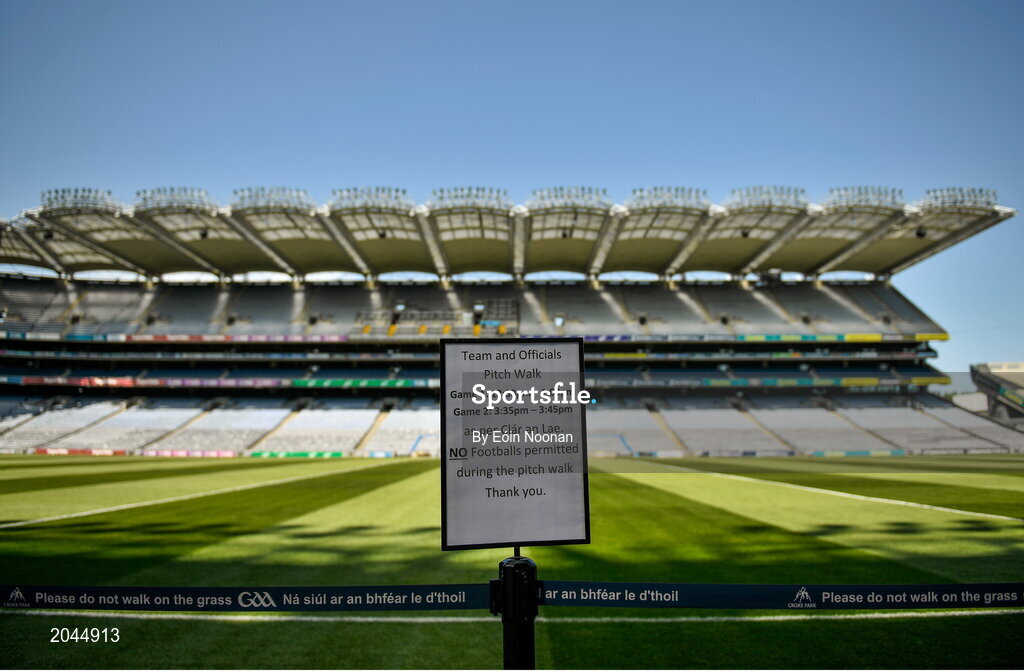 18 July 2021; A sign illustrating when teams can walk the pitch before the Leinster GAA Senior Football Championship Semi-Final match between Dublin and Meath at Croke Park in Dublin. Photo by Eóin Noonan/Sportsfile