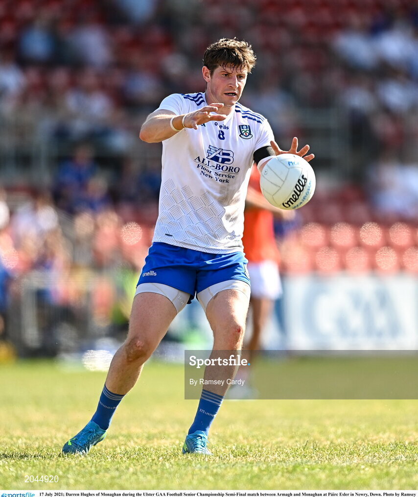 17 July 2021; Darren Hughes of Monaghan during the Ulster GAA Football Senior Championship Semi-Final match between Armagh and Monaghan at Páirc Esler in Newry, Down. Photo by Ramsey Cardy/Sportsfile