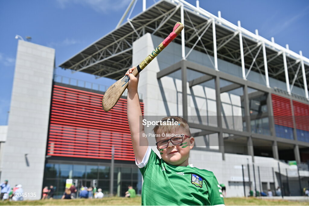 18 July 2021; Limerick supporter Cian Coleman, age 5, from Doon, before the Munster GAA Hurling Senior Championship Final match between Limerick and Tipperary at Páirc Uí Chaoimh in Cork. Photo by Piaras Ó Mídheach/Sportsfile