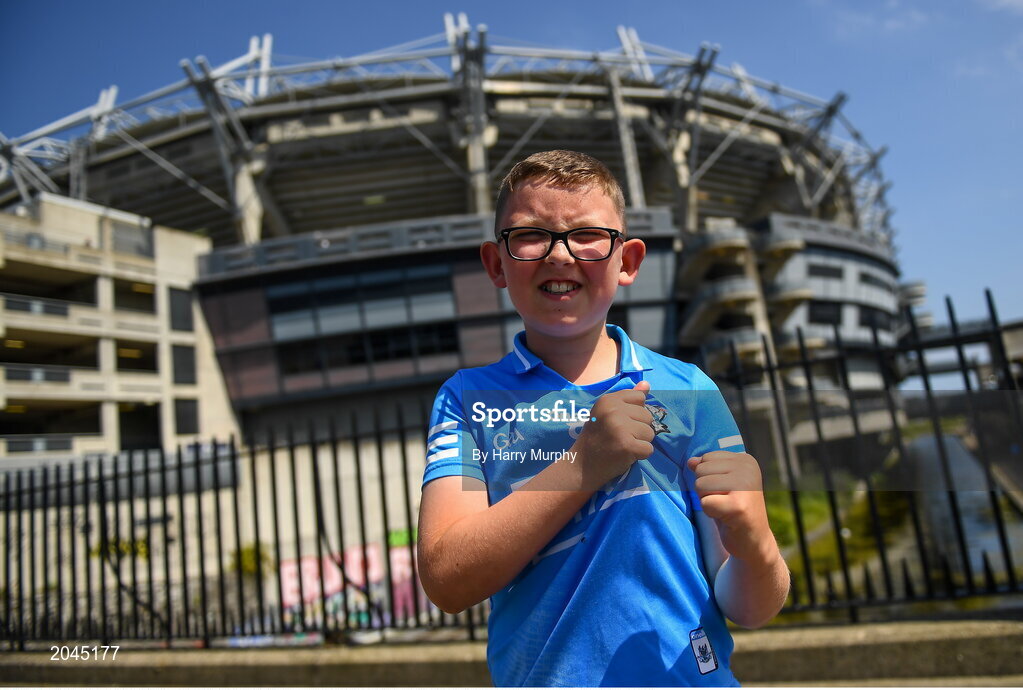 18 July 2021; Dublin supporter Graham O'Neill, aged 10, from Tallaght, before the Leinster GAA Senior Football Championship Semi-Final match between Dublin and Meath at Croke Park in Dublin. Photo by Harry Murphy/Sportsfile