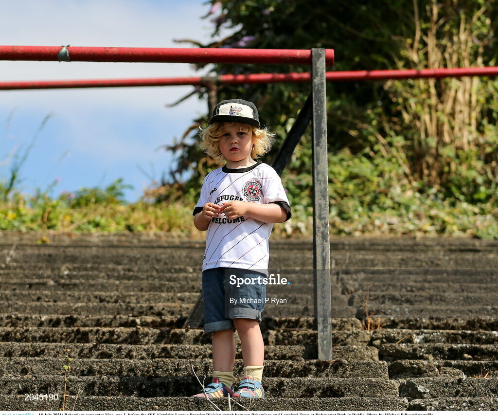 18 July 2021; Bohemians supporter Vigo, age 3, before the SSE Airtricity League Premier Division match between Bohemians and Longford Town at Dalymount Park in Dublin. Photo by Michael P Ryan/Sportsfile
