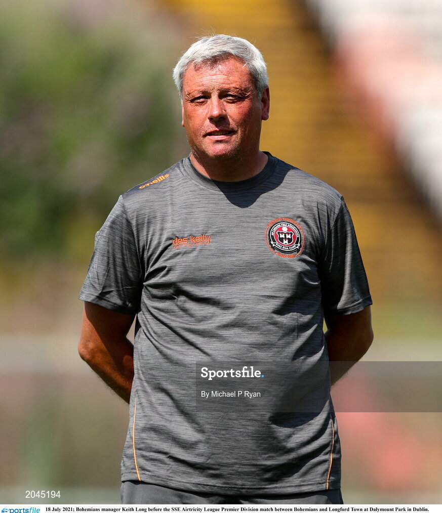 18 July 2021; Bohemians manager Keith Long before the SSE Airtricity League Premier Division match between Bohemians and Longford Town at Dalymount Park in Dublin. Photo by Michael P Ryan/Sportsfile