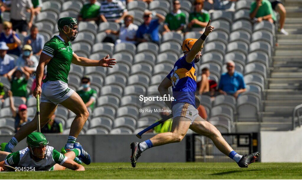 18 July 2021; Jake Morris of Tipperary celebrates scoring a goal in the 4th minute of the Munster GAA Hurling Senior Championship Final match between Limerick and Tipperary at Páirc Uí Chaoimh in Cork. Photo by Ray McManus/Sportsfile