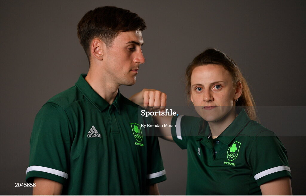 29 June 2021; Brother and sister Aidan, left, and Michaela Walsh during a Tokyo 2020 Team Ireland Announcement for Boxing in the Sport Ireland Institute at the Sport Ireland Campus in Dublin. Photo by Brendan Moran/Sportsfile