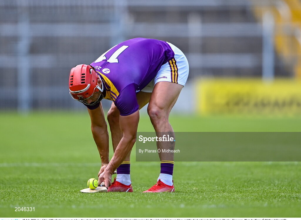17 July 2021; Lee Chin of Wexford prepares to take a free during the GAA Hurling All-Ireland Senior Championship Round 1 match between Clare and Wexford at Semple Stadium in Thurles, Tipperary. Photo by Piaras Ó Mídheach/Sportsfile