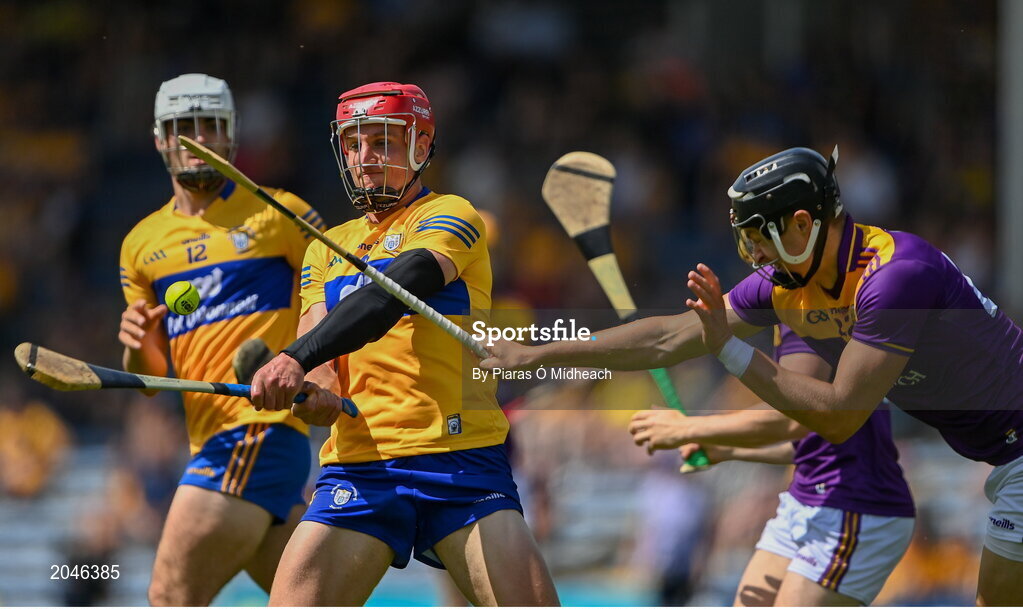 17 July 2021; John Conlon of Clare in action against Jack O'Connor of Wexford during the GAA Hurling All-Ireland Senior Championship Round 1 match between Clare and Wexford at Semple Stadium in Thurles, Tipperary. Photo by Piaras Ó Mídheach/Sportsfile