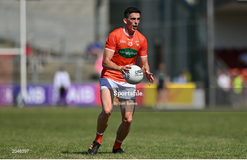 17 July 2021; Rory Grugan of Armagh during the Ulster GAA Football Senior Championship Semi-Final match between Armagh and Monaghan at Páirc Esler in Newry, Down. Photo by Sam Barnes/Sportsfile